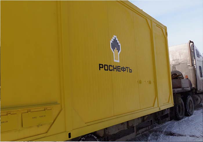 По договору с ЗАО «РН-Снабжение», г.Нижневартовск, нашей компанией изготовлена дизельная электростанция мощностью 630 кВт, которая установлена в утепленный блок-контейнер по 2 степени автоматизации. Дизельная электростанция АД 630 выполнена на базе двигателя CUMMINS и генератора STAMFORD.